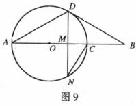(2)若点N在⊙O上,且DN⊥AB,垂足为M,NC=10,求AD的长。