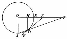 19.如图,圆O的半径OA与OB互相垂直,P是线段OB延长线上的一动点,线段AP交圆O于点D,过D点作圆O的切线交OP于点E。