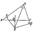 3.如图,已知在△ABC中,BC的边垂直平分线DE与∠BAC的角平分线AE交于点E,过E作EP⊥AB于P,EQ⊥AC的延长线于Q。求证:BP=CQ