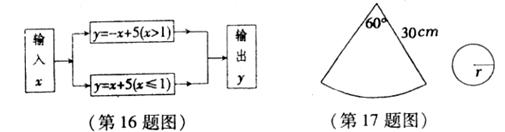 17.如图,有一个扇形和一个圆形纸片,扇形的圆心角为60°,半径为30cm若用这两张纸片围成一个圆锥,则圆形纸片的半径应为 cm。