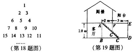 18.一系列数如图排列,第四行最大的数是l0,第五行最大的数是15,照此排列规律,第六行最大的数是 ,第n行最大的数是 (用含n的代数式表示)。