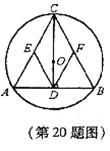 已知:如图,⊙O是△ABC的外接圆,圆心O在这个三角形的高CD上,E、F分别是边AC和BC的中点。求证:四边形CEDF是菱形。