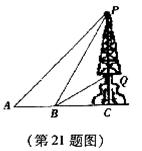 如图,从地面上的一点A测得山顶电视发射塔的上端P点的仰角是45°,向前走60m到达B点,测得P点的仰角是60°,电视塔底部Q点的仰角是30°,求电视发射塔PQ的高度。(结果保留根号)