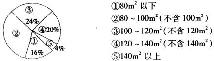 Ⅱ.根据被调查消费者打算购买不同住房面积的人数情况制成的扇形统计图: