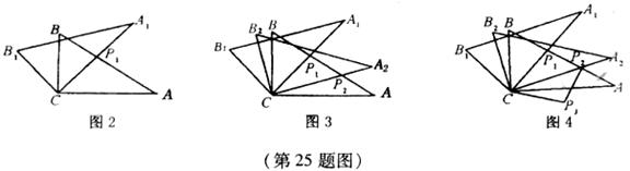 (2)将图2中△A1B1C绕点C顺时针旋转30°到△A2B2C(如图3),P2是A2C与AB的交点,线段CP1与P1P2之间存在一个确定的等量关系,请你写出这个等量关系式,并说明理由;
