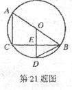 21.如图,AB是⊙O的直径,BC是弦,OD_LBC于E,交⊙O于D.(1)请写出四个不同类型的正确结论:(2)若BC=8,ED=2,求⊙O的半径.(本题满分8分)