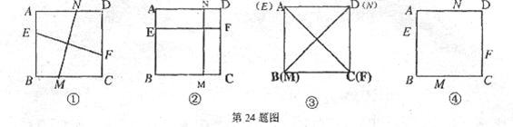 24.如图①,E、F、M、N是正方形ABCD四条边AB、BC、CD、DA上可以移动的四个点,每组对边上的两个点,可以连接成一条线段.(本题满分l0分)
