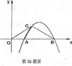 交于A、B两点(点A在点B的左侧),抛物线上另有一点C在第一象限,满足∠ACB为直角,且恰使△0CA∽△0BC.