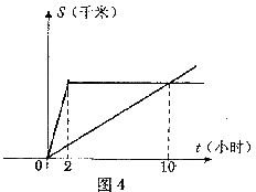 10.如图4表示“龟兔赛跑”时路程与时间的关系,已知龟、兔上午8:O0从同一地点出发,请你根据图中给出的信息,算出乌龟在 点追上兔子.