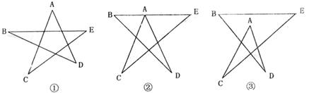 28、(12分) 如图①所示,有一个五角形ABCDE图案,你能说明∠A十∠B十∠C+∠D+∠E=180°吗?如果A点向下移动到BE上(如图②)或BE的另一侧(如图③)。上述结论是否依然成立,说明理由。