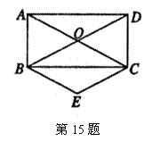 15.如图,O是矩形ABCD的对角线的交点,BE∥AC,CE∥BD,则四边形OBEC是______形。