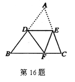 16.如图,D、E是△ABC的两边AB、AC的中点,将△ABC沿线段DE折叠后使点A落在点F处(点F在BC上),若∠B=55°,则∠BDF=________。
