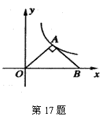 17.如图,△OAB是等腰直角三角形,直角顶点A在反比例函数