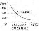 某校科技小组进行野外考察,途中遇到一片十几米宽的烂泥湿地。为了安全、迅速的通过这块湿地,他们沿着前进路线铺了若干块木块,构筑成一条临时的近道。木板对地面的压强p(Pa)是木板面积S(m2)的反比例函数,其图像如图所示。