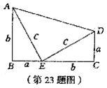 如图,在梯形ABCD中,AB∥CD,∠B=∠C=∠AED=90º,BE=DC=a,AB=EC=b,AE=ED=c,请利用面积法证明勾股定理:a2+b2=c2.