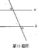 11.已知a∥b,∠l=62°,则∠2= 。