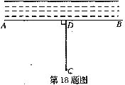 18.如图,计划把池中的水引到C处,可过C点引CD⊥AB于D,然后沿CD开渠,可使所开的渠道最短,这种设计的主要依据是 。
