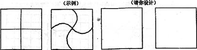 如图。有两个正方形的花坛,准备把每个花坛分成形状相同的四块,种不同的花草。下面左边的两个图案是设计示例,请你在右边的两个正方形中再设计两个不同的图案。