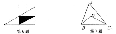 6.厨房角柜的台面是三角形,如果把各边中点的连线所围成的三角形铺成黑色大理石。(下图中阴影部分)其余部分铺成白色大理石,那么黑色大理石的面积与白色大理石面积的比是