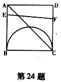 (2)设l<t<2,当t为何值时,EF与半圆相切?
