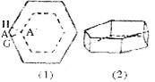 8、将一块正六边形硬纸片如图(1),做成一个底面仍为正六边形且高相等的无盖纸盒,侧面均垂直于底面,见图(2),需在每一个顶点处剪去一个四边形,例如图(1)中的四边形