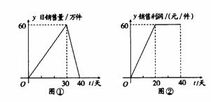 某公司专销产品A,第一批产品A上市40天内全部售完.该公司对第一批产品A上市后市场销售情况进行了跟踪调查,调查结果如图所示:其中,图①中的折线表示的是市场日销售量与上市时间的关系,图②中的折线表示的是每件产品A的销售利润与上市时间的关系.