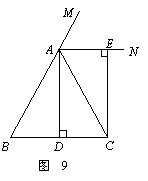 已知:如图9,在△ABC中,AB=AC,AD⊥BC,垂足为点D,AN是△ABC外角∠CAM