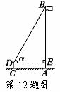 12.如图,小鸣将测倾器安放在与旗杆AB底部相距6m的C处,量出测倾器的高度CD=1m,测得旗杆顶端B的仰角