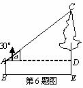 6.如图,小颖利用有一个锐角是30°的三角板测量一棵树的高度,已知她与树之间的水平距离BE为5m,AB为1.5m(即小颖的眼睛距地面的距离),那么这棵树高是( )