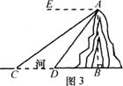 8.如图3,河旁有一座小山,从山顶A处测得河对岸点C的俯角为30°,测得岸边点D的俯角为45°,C、D、B在同一水平线上,又知河宽CD为50米.则山高AB是