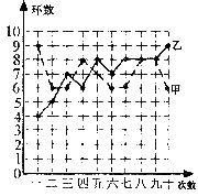 射击集训队在一个月的集训中,对甲、乙两名运动员进行了10次测试,成绩如图所示.