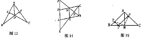 如图13,BF⊥AC,CE⊥AB,BE=CF。求证:AD平分∠BAC。