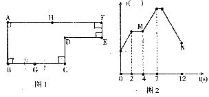 13.已知:如图l,点G是BC的中点,点H在AF上,动点P以每秒2cm的速度沿图1的边线运动,运动路径为:G→C→D→E→F→H,相应的