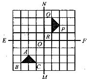 10.如图,8×8方格纸上的两条对称轴EF、MN相交于中心点O,对△ABC分别作下列变换: ①先以点A为中心顺时针方向旋转90°,再向右平移4格、向上平移4格;