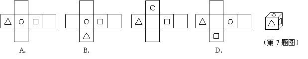 7.下面四个图形中,经过折叠能围成如图只有三个面上印有图案的正方体纸盒的是( )