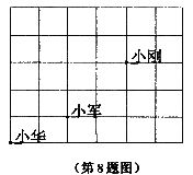 8.课间操时小华、小军、小刚的位置如图,小华对小刚说,如果我的位置用(0,0)表示,小军的位置用(2,1)表示,那么你的位置可以表示成