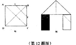 12.如图,正方形硬纸片ABCD的边长是4,点E、F分别是AB、BC的中点,若沿左图中的虚线剪开,拼成如下右图的一座“小别墅”,则图中阴影部分的面积是