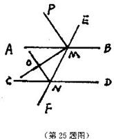25、(17分)如图,AB//CD,MP、MO、NO分别为