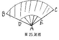 25.已知,如图,扇形纸扇完全打开后,外侧两条竹条AB、AC夹角为120°,AB的长为30cm,贴纸部分BD的长为20cm,求贴纸部分的面积。