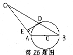 26.已知,如图,AB是⊙O的直径,BC交⊙O于D,DE⊥AC于点E,添加一个条件使DE是⊙O的切线,(要求:条件不能与添加的辅助线有关)并进行证明: