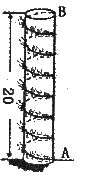 白话译文:如图,有圆柱形木棍直立地面,高20尺,圆柱底面周长3尺.葛藤生于圆柱底部A点,等距离缠绕圆柱七周,恰好子长到圆柱上底面的B点.问葛藤的长度是多少尺?