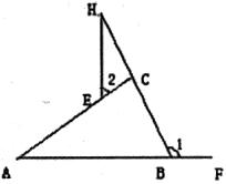已知:如图,在△ABC中,∠1是它的一个外角,E为边AC上一点,延长BC到H,连接HE.