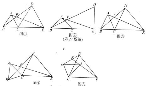 27、(本题满分l0分)填空或解答:点B、C、E在同一直线上,点A、D在直线CE的同侧,AB=AC,EC=ED,∠BAC=∠CED,直线AE、BD交于点F. .