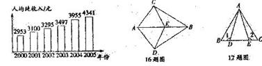 15.06年1月5日《长江日报》报道:“十五”期间,市城乡居民收入不断增长,其中农村居民人均纯收人由2000年的2953元增加到2005年的4341元。下图是我市2000年-2005 年农村居民人均纯收入的统计图。请你根据图形写出两条信息: , 。