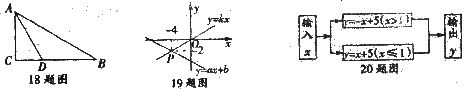 18.如图,在△ABC中,∠C=90°,AD平分∠CAB,BC=8cm,BD=5cm.,那么D点到直线AB的距离是 cm。