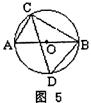 18.如图5,在O⊙中,AB为直径,∠ACB的平分线交⊙O于D,则∠ABD= 。