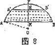 23.(8分)如图8所示,有一座拱桥圆弧形,它的跨度AB为60米,拱高PM为l8米,当洪水泛滥到跨度只有30米时,就要采取紧急措施,若拱顶离水面只有4米,即PN=4米时, 是否采取紧急措施?