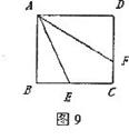 24.(8分)如图9所示,正方形ABCD的BC边上有一点E,∠DAE的平分线交CD于F,试用旋转的思想方法证明AE=DF+BE。