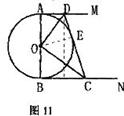 27.(13分)如图,⊙O 的直径AB=12cm。AM、BN是两条切线,DC切⊙O 于E,交AM于D,交BN于C,设AD=