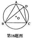 16.如图,在⊙O中,已知∠ACB=∠CDB=60º,AC=3,则△ABC的周长是 。